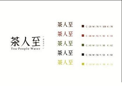 设计说明:茶人至,意为“最好的茶、最好的人”;在字体处理上花了较多的功夫,用了两种不同的笔触混合整理而成,骨架是仿宋的变形;从茶道六君子与茶屑延伸了辅助图形。