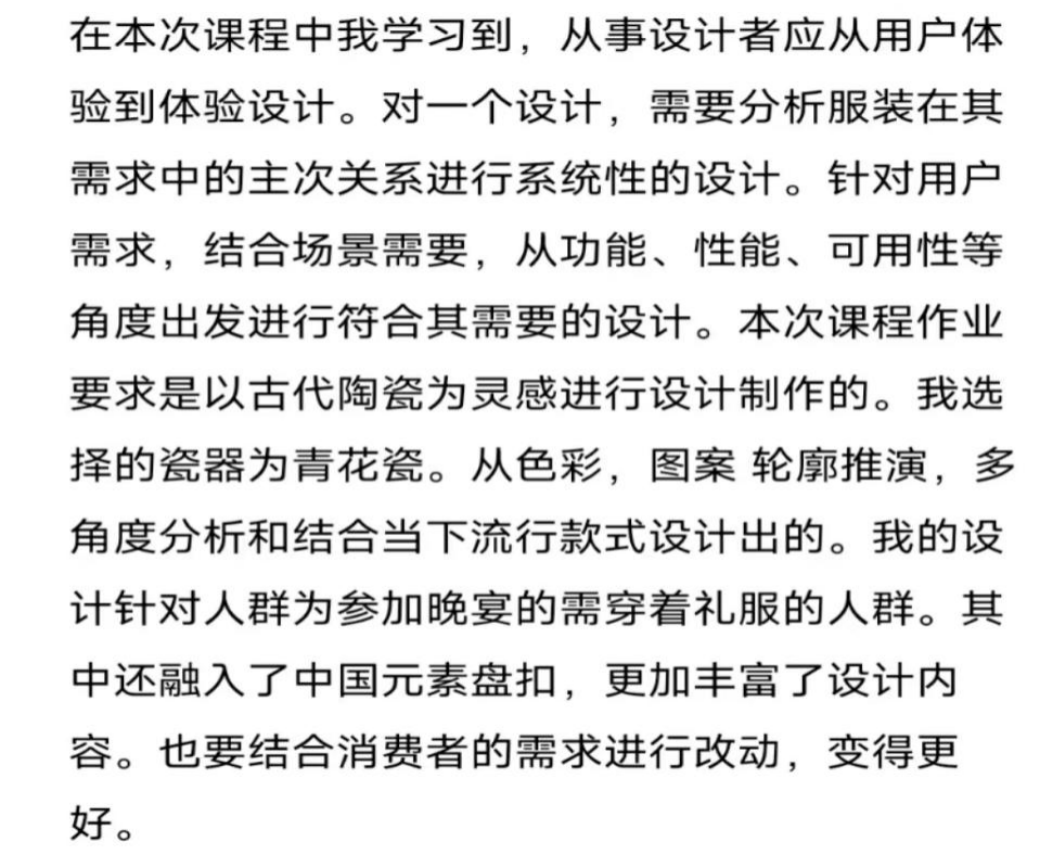 今年的课堂大作业是以中国传统瓷器为灵感来源,提取中国传统器物中提取元素,进行创意设计,此次设计旨在服务于服装市场以及消费者们对中国传统风格设计的需求。下面我们来饱览今年冬季短学期在与王军峰教授《设计中的用户体验》课程下,服装与服饰设计专业的小伙伴们,碰撞出哪些火花。