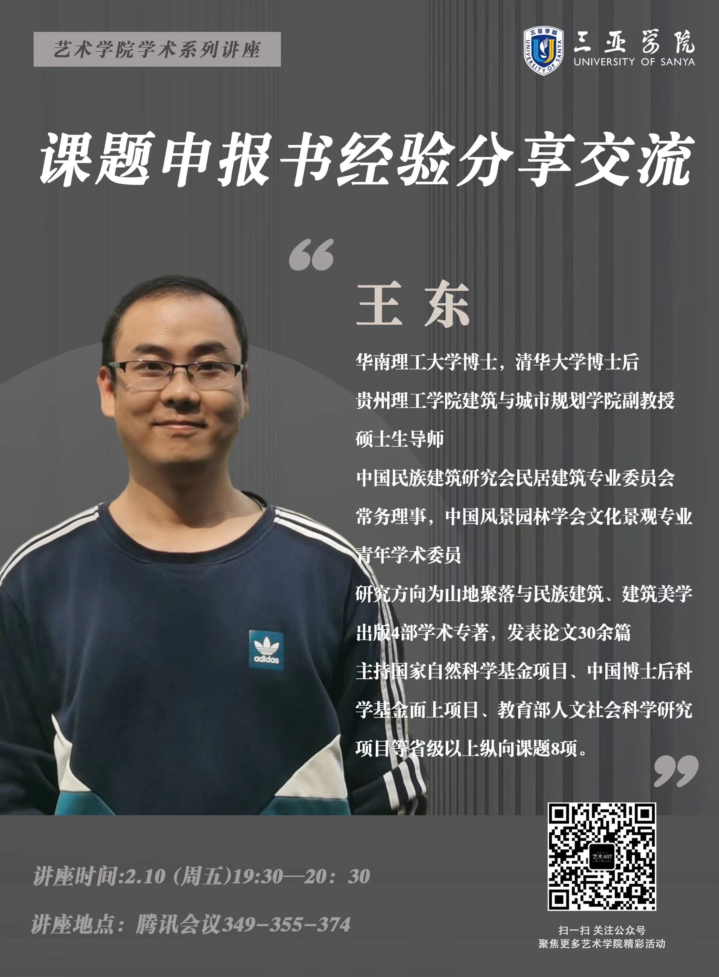 2023年2月10日晚7:30,名为“课题申报书撰写的经验分享”讲座在线上腾讯会议成功举办。主讲人是永利集团特邀的清华大学设计学博士后、贵州理工学院建筑与城市规划学院副教授、贵州民族大学民族建筑方向硕士生导师王东先生。讲座由经理助理孙晋博老师主持,永利集团和其他学院四十余名教师参加。讲座旨在通过王教授的经验分享使老师们能避免在课题申报书撰写过程中易范的错误,提高选题申报成功率。