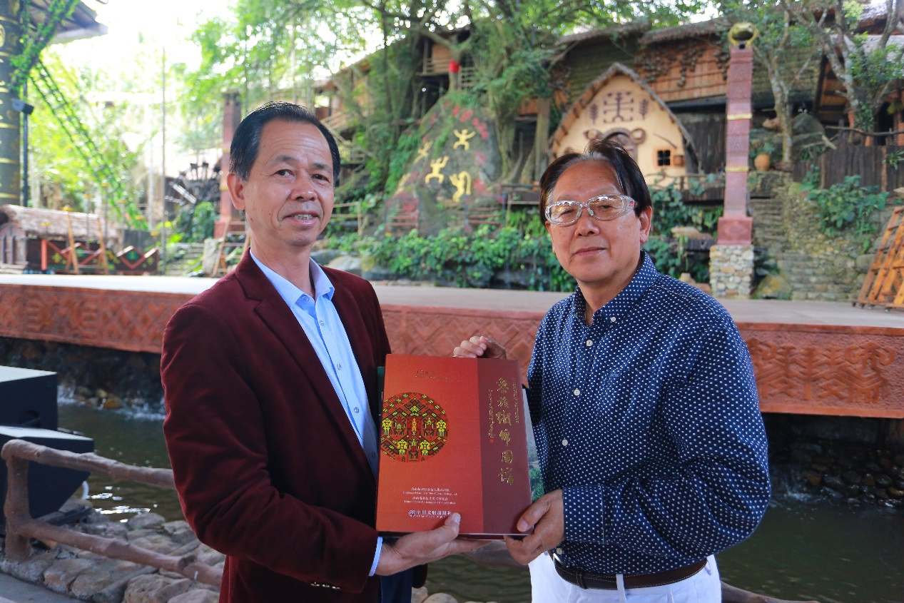 胡项城,国际艺术家,因其个人独特的旅居经历而有着对不同民族、地域文化艺术的深入研究,同时他在教育,生态、环保、等其他领域成就卓著并拓展着其创作边界。此次实地考察,胡项城先生就黎苗文化的变迁及发展、国家级非物质文化遗产保护、槟榔谷文化旅游区的挖掘传承等事宜与陈国东先生进行了深入交流。