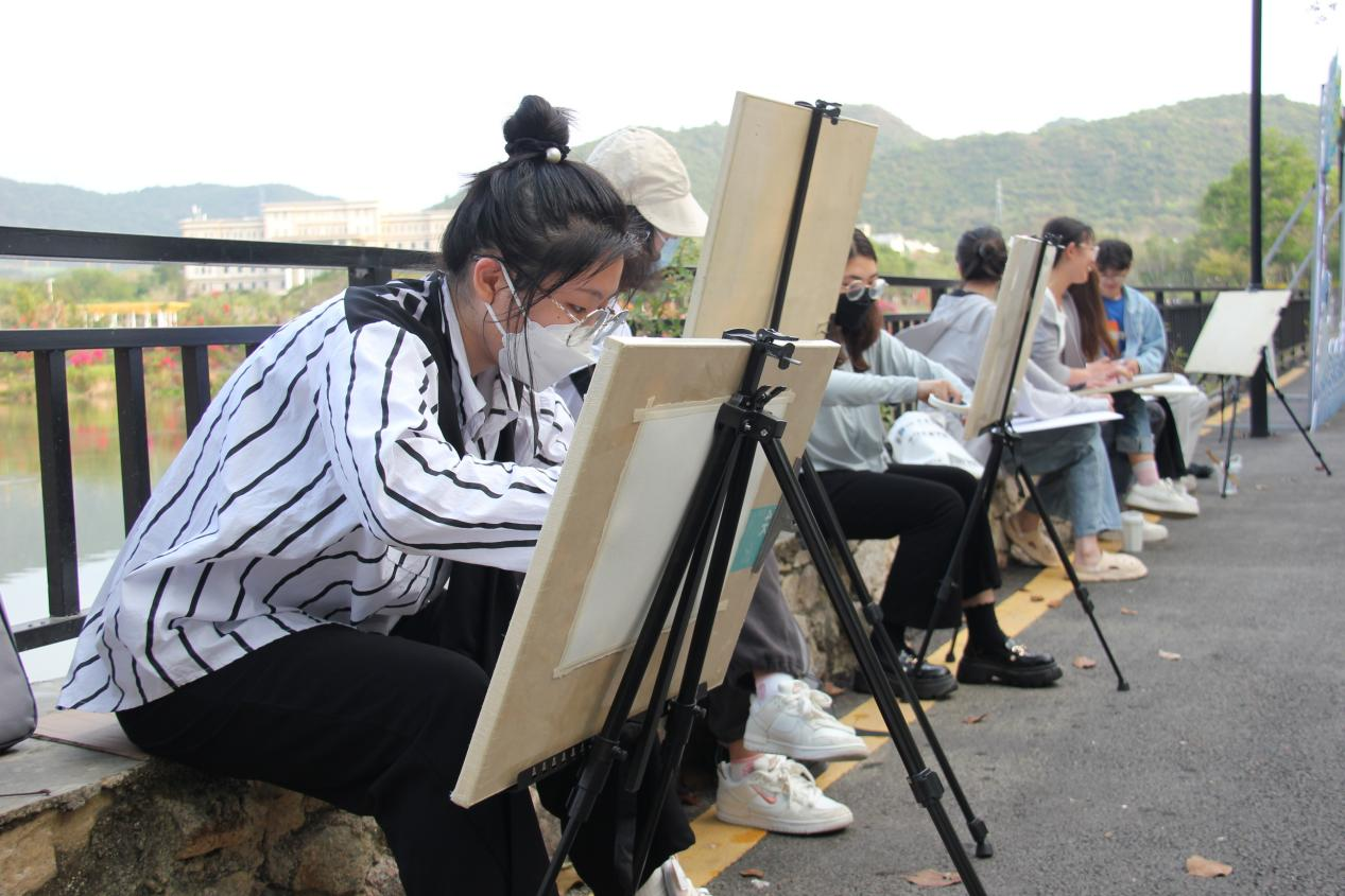 本次活动发布后得到了同学们的积极响应,参与人数超900人。在领取画笔、画纸等绘图工具,由各部长发布活动具体要求后,参与活动的同学围绕学院水系和标志性建筑自选视角进行写生,绘画形式分为素描和色彩。“长安大道连狭邪,千盏灯色照碧云。”同学们在选定角度进行取景后,专注地挥动着手中的画笔,描绘校园内春日美景。这如诗的风景令人赏心悦目。