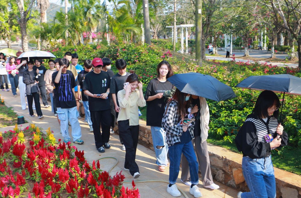 随后老师们又带领大家游览校园,欣赏四季花海及皇家云水周围等学校美景。