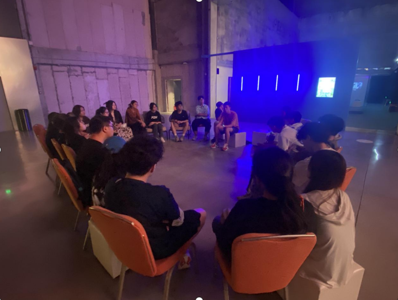 陈晓龙、白云、焦芸珊、林意深老师与员工在观展后,现场交流