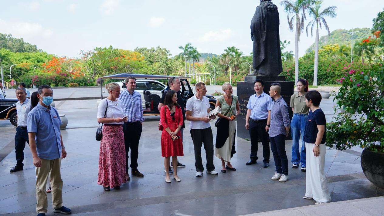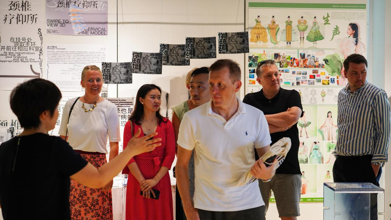 参观过程中,陈琳副经理和来自服装与服饰设计专业的黄超伟老师就美术馆中当前在展的本届毕业生作品进行了全面的中英双语介绍和讲解。到访来宾们相继被馆内多个系列作品吸引,并由此为原点延伸到关于海南文化的深入探讨。