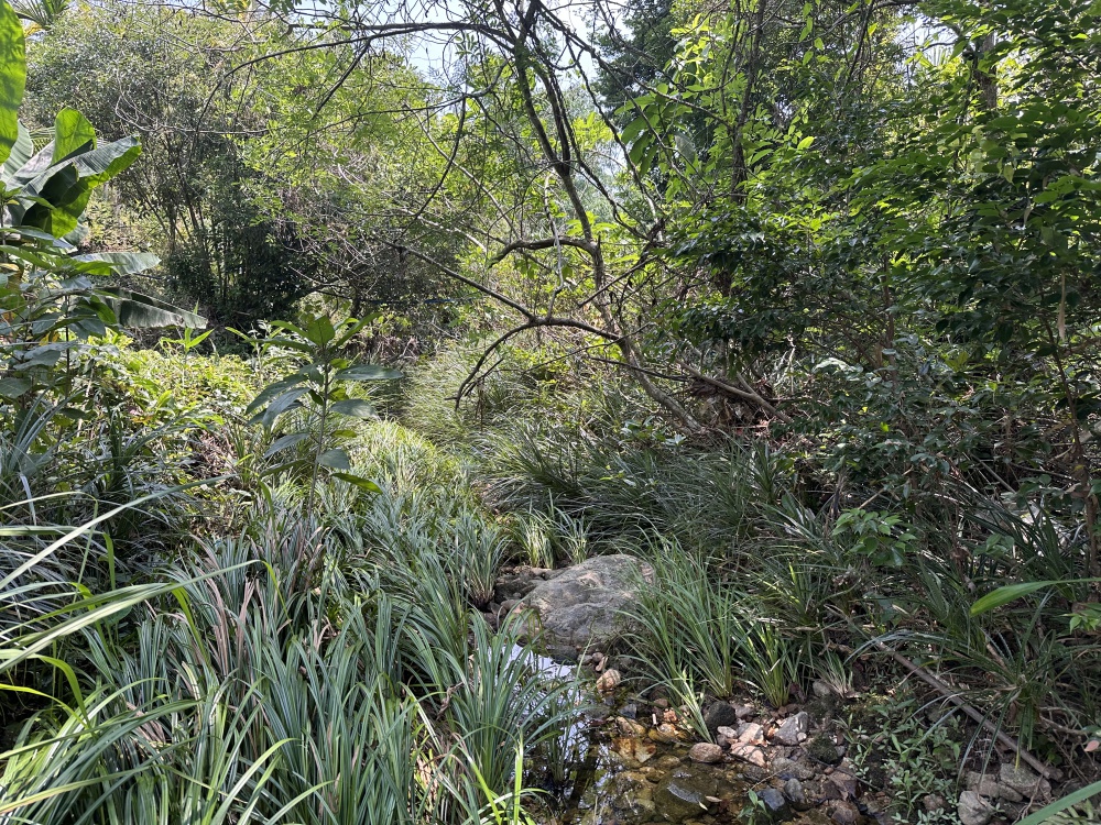此次采集活动的地点在万宁南林农场26队,主要是围绕一条溪水旁展开,林密刺多,蚊虫叮咬,烈日炎炎,我们的老师和同学克服种种困难,经过2个小时的寻找,最终结果是一无所获。这样的结果也是意料之中,因为植物学的探索总是伴随着失望和希望。生境的改变导致了原有物种的消失是常有的现象,但是探索的步伐不会停止,下一站,琼海。