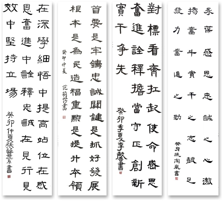 另外,本次活动也同时展出了公司党总支本学期所征集的主题教育书画优秀作品。作品取材广泛,形式多样,既有表达诚实守信的书法,也有表现感恩励志的手绘。同学们挥毫泼墨、直抒胸臆,托物言志、借景喻情,用毛笔、画笔和刻刀抒发了内心的感受。