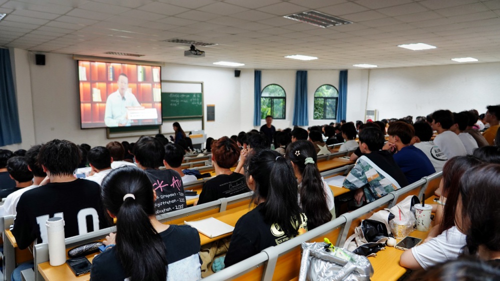 在开学第一课中,陆丹博士为新生们讲解了“开启大学之门的学习价值”“大学在干什么与员工要怎么做”等方面的内容,并对新生在四年大学学习生涯做出期望,即学习不断成长成才,形成具备四种能力——一是能够更好感知领悟世界、社会,人的认知能力;二是能够更好适应生产生活及变化,人的适应能力;三是能够进行科学创新和产品创造,人的实践能力;四是具有思想探索及领导的能力,思想力与领导力。
