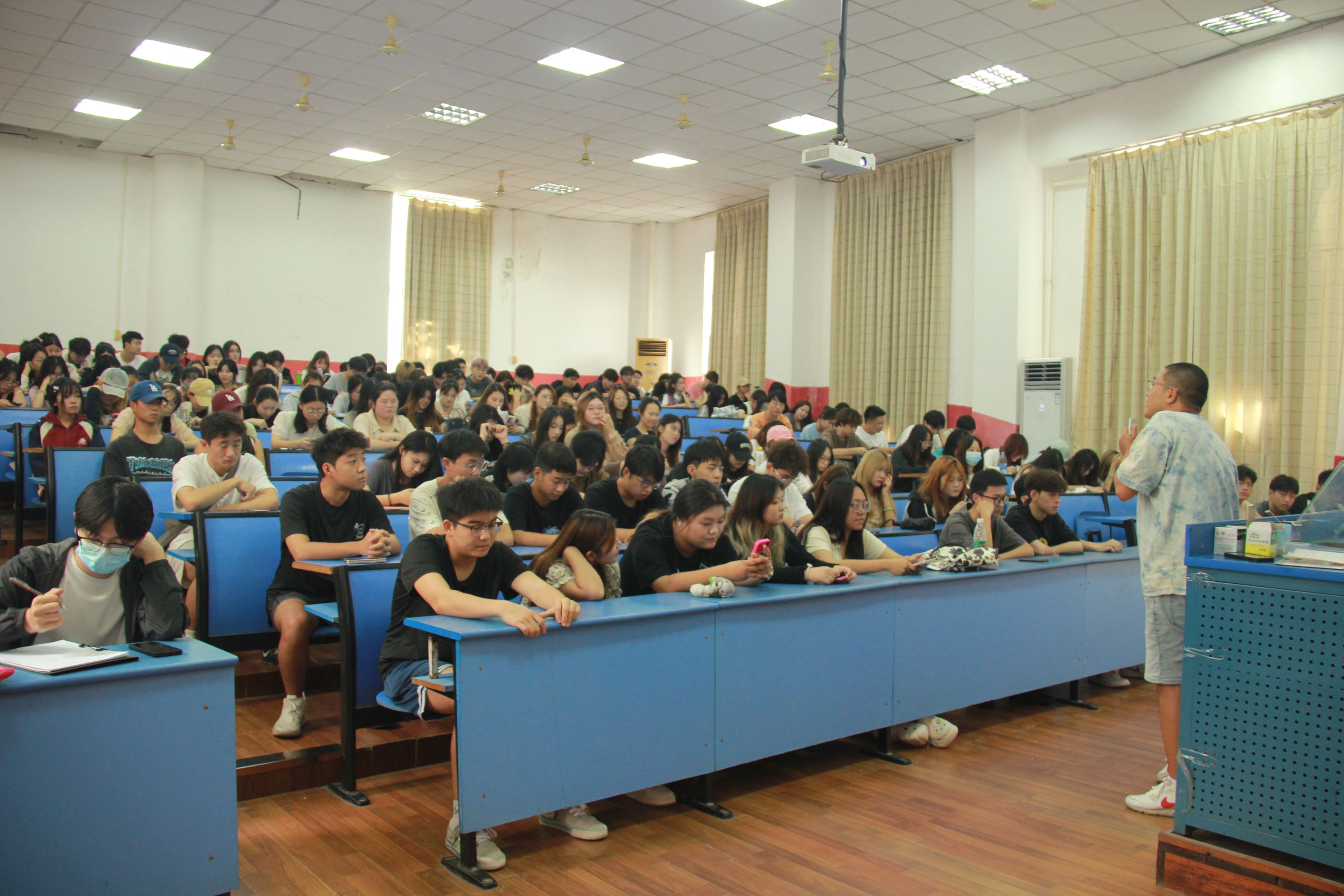 没有严肃正式的常规开场,白云导师用轻松幽默的“认人环节”拉开了年级大会的帷幕。从熟识每个人的姓名到了解每个人的不同特点,白云导师引领着大家回顾大一学年的不同体验,自我成长,自我经历。他认为大一学年最重要的就是“体验”二字,同学们在上一年里体验了新的生活方式,新的学习方式,新的思想模式,适应了校园生活,接下来的要务就是“明确目标”,学习目标,生活目标,从小到大,在解决问题里达成目标,得到成长。