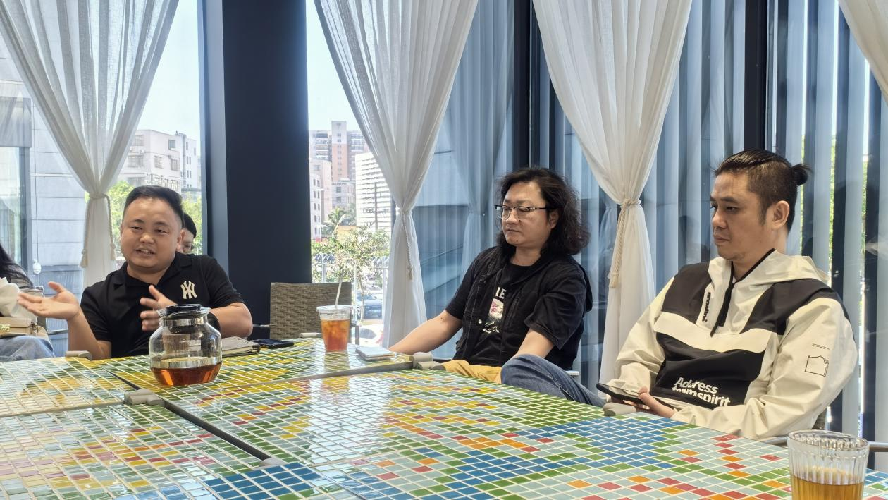 上午抵达海南省博物馆海博堂后,视传专业师生与海南省博物馆文创团队负责人、海南蓝坊文化有限公司总经理潘阳、产品经理马新民进行了座谈。双方就海南旅游文创合作研发进行了深入探讨,共同探索如何将公司视觉传达专业的优势与海南旅游文创产业相结合,为公司产教融合、校企合作开辟新的路径。