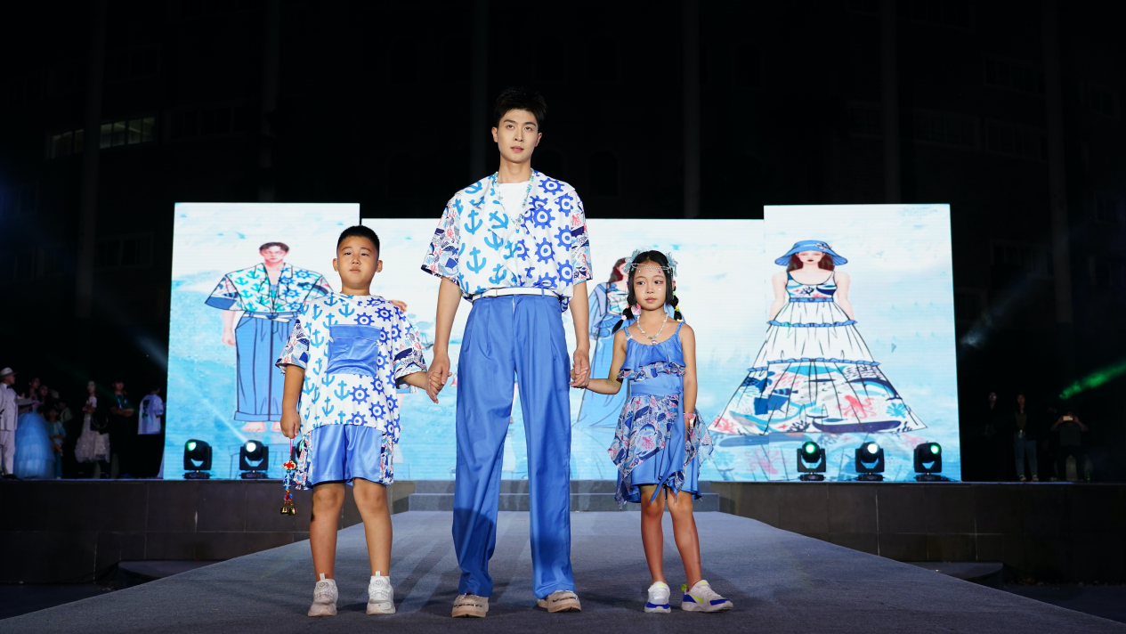 《开篇:科技之光》以AI科技元素与创新面料为设计重点,展现科技与时尚的融合。《上篇:甜蜜畅想》聚焦时尚文旅产业,以婚纱礼服、旅拍妆造、度假服饰为设计内容,耕耘甜蜜产业。《中篇:闲情都市》以都市人群的日常生活为出发点,通过休闲服饰的设计手段,探讨当代城市生活中如何实现快节奏与慢生活的平衡。《下篇:槟榔谷韵》是服装专业与槟榔谷旅游景区的产教融合项目,设计团队在深入研究了槟榔谷的地理环境、民族文化和历史背景之后,为景区工作人员设计了不同类型的员工制服。《末篇:传统印记》以传统文化和海南本土文化为灵感来源的创意服装设计作品,也是这些年服装专业立足本土、强调特色化、应用型人才培养模式的教学成果体现。