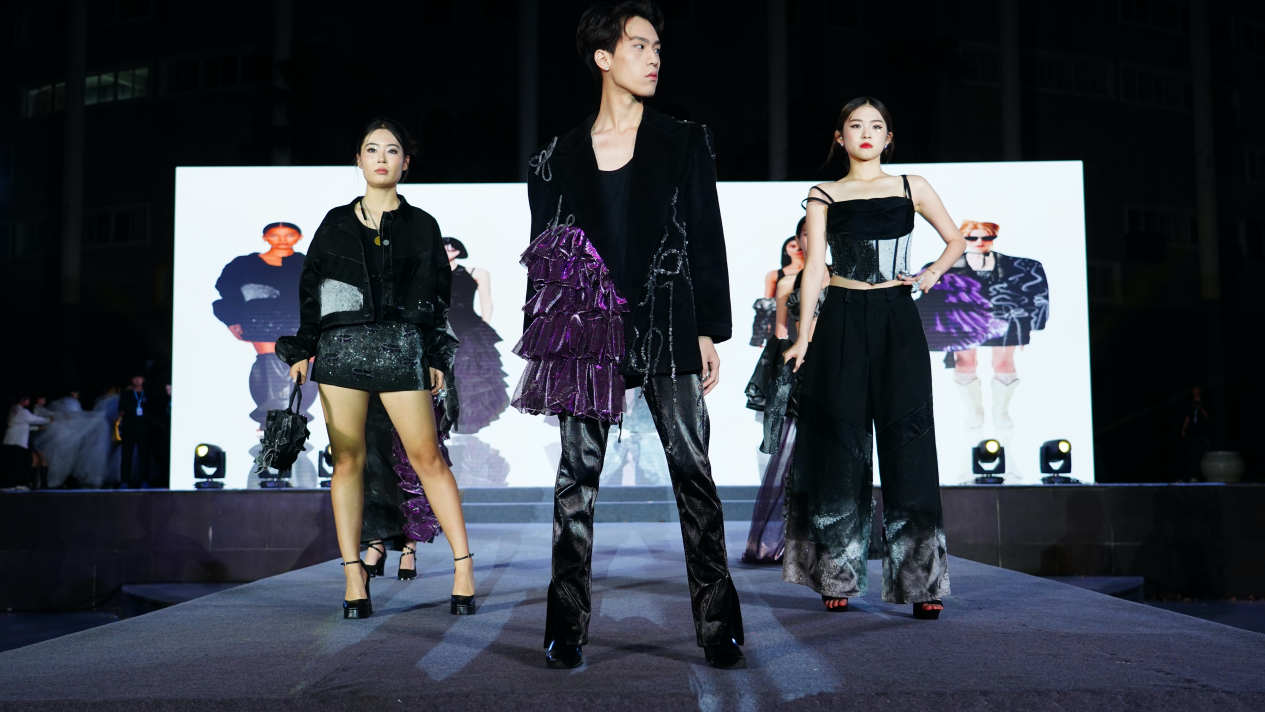 此次大秀的第一大亮点便是数字服装的首次亮相。李思诚和肖建国创作的《未来之城》是一款结合了AI与元宇宙的服装设计作品。作品以科技感和未来主题为灵感,通过数字化手段将AI与元宇宙的概念融入到服装设计中。以充满想象力的设计理念,勾勒出一个充满科技魅力的未来世界,在这个世界里,数字服装拥有无限的可能。
