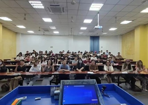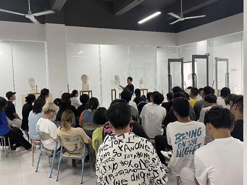 在2023年10月23日,宋琪副教授向本专业员工讲解了“如何学好服装设计的专业基础课”——以结构素描为根基,将人体工程与服装相结合,通过一定的三维空间反应两者存在的空间关系及其双方之间的紧密联系,同时在深入学习后对于人物、动物等动态、表情也需进步进行了解和速写画法的揣摩。第三阶段的创新是在先前的基础上让不同的色彩在同一服装上有了碰撞,从而呈现出别样的花纹形象。