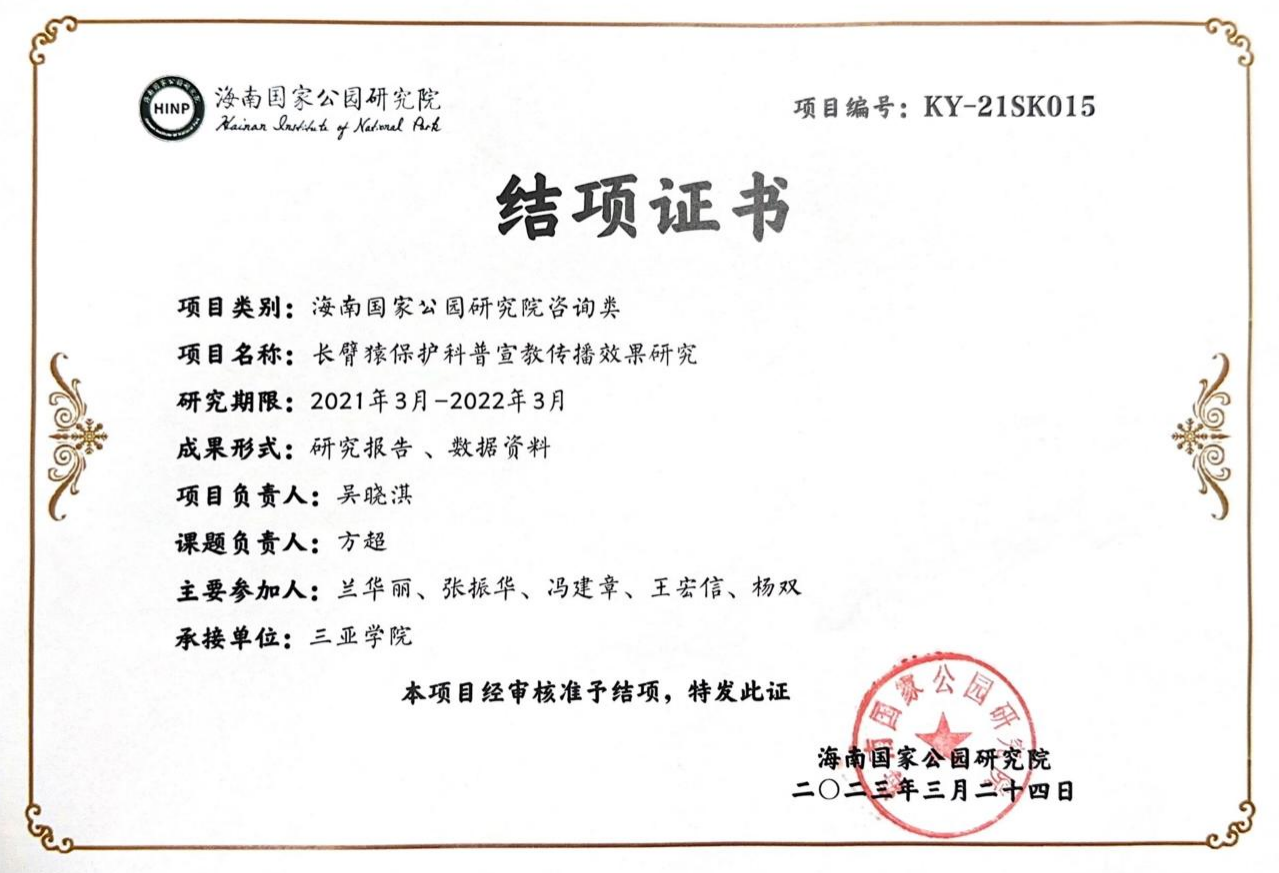 视传专业团队省级横向课题《长臂猿保护科普宣教传播效果研究》结项