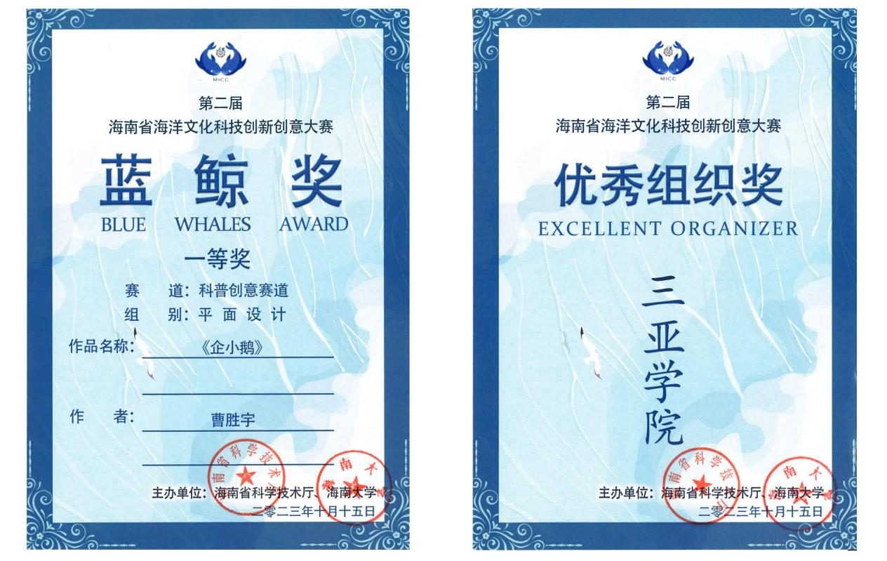 本年度在学科竞赛的参与和组织中,视传专业均取得不错成果,先后策划筹办了2023年首届“AIGC赋能新视界”作品征集大赛和“青春正好”三亚外事贺卡设计大赛。视传员工还积极参与国内相关设计赛事活动,并获得一定成绩。