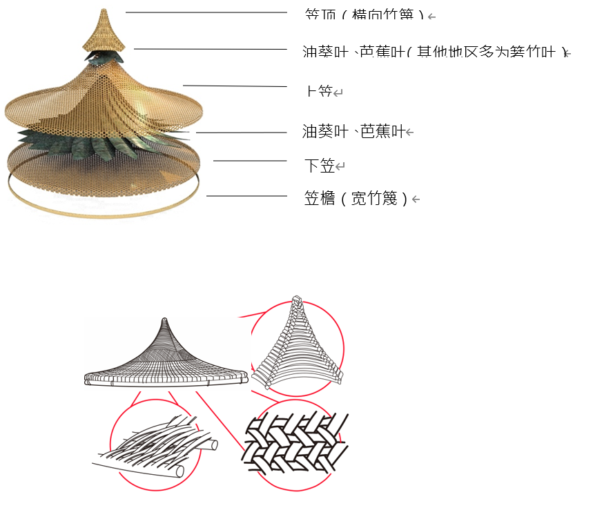 笠帽的分布和最普遍的材料箬竹、棕树、茅草有关分布有关。箬竹:长江以南各省均有分布。海南本地的居民都是由大陆迁移过来的,所以笠帽出现在海南必然是随着人口迁移传入岛内,而制作斗笠的材料通常都是因地制宜的,所以传统东坡笠的材料才会采用当地较常见的芭蕉叶、油葵叶、白竹、白藤等。