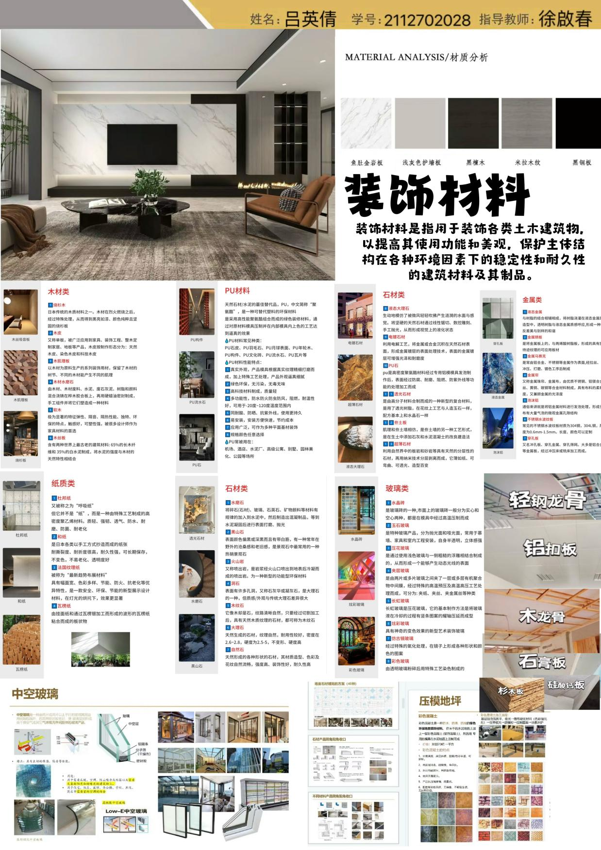 在装饰材料与构造课程中,我们深入探索了环境设计中各种装饰材料的特性和应用,以及它们在构建空间、营造氛围和实现设计理念方面的重要性。