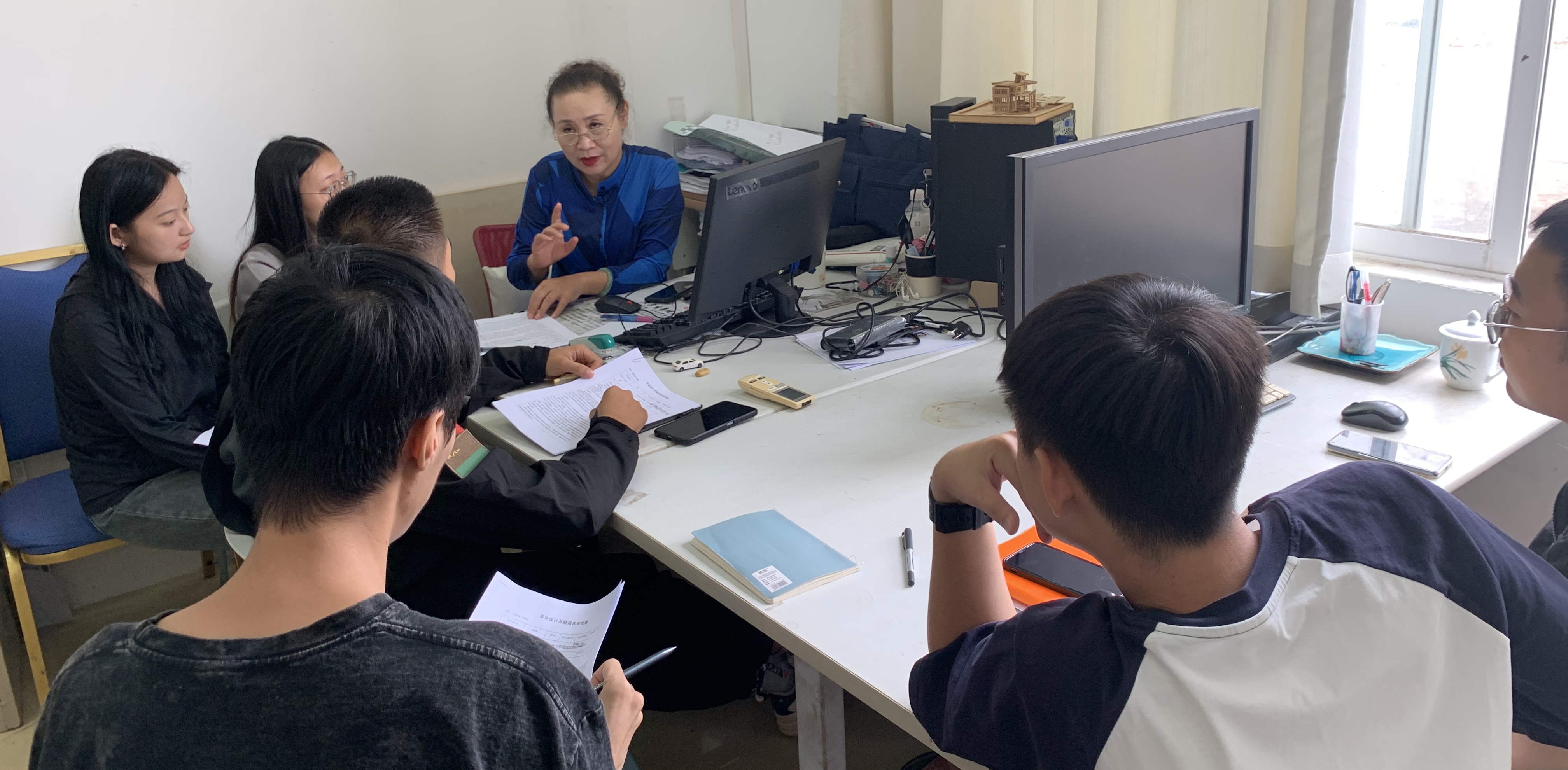 冉旭教授利用在校办公时间为员工答疑解惑
