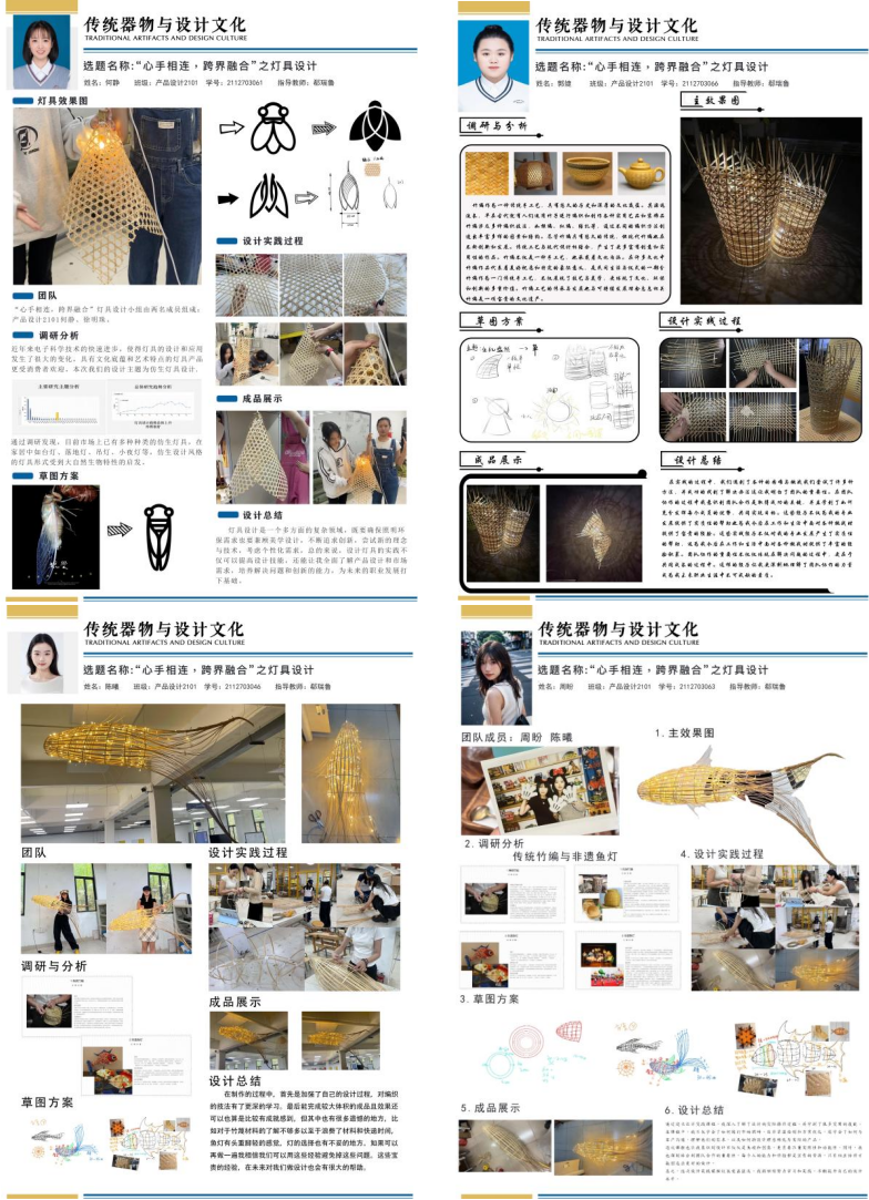 1.目标产品一:利用传统编织技法,利用藤篾材料完成十二个编织小样目标产品二:“心手相连、跨界融合”之灯具设计