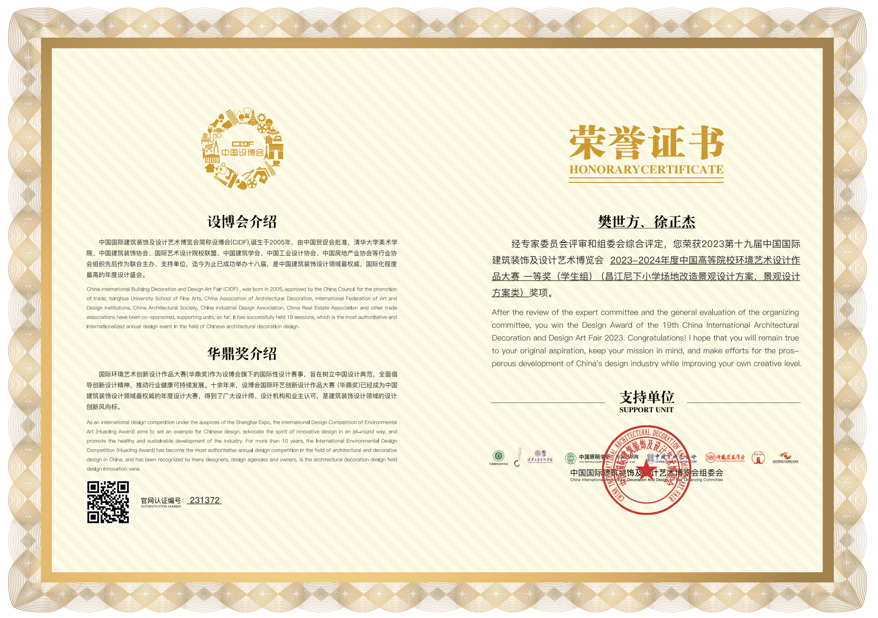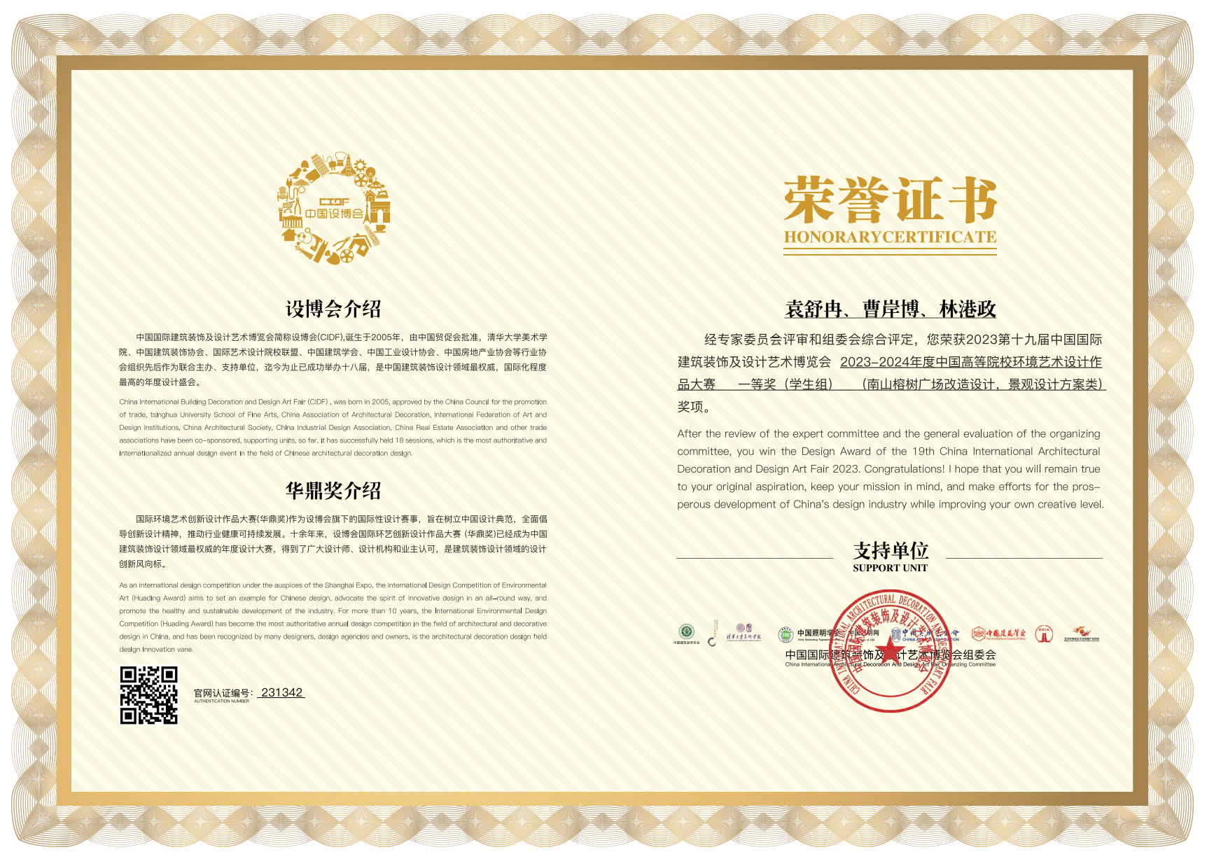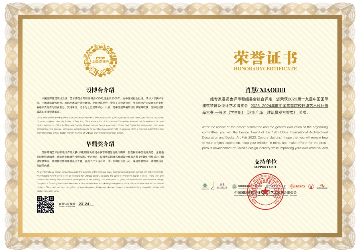 以下是员工获得的中国高等院校环境艺术设计作品大赛—等奖部分证书(共8个)