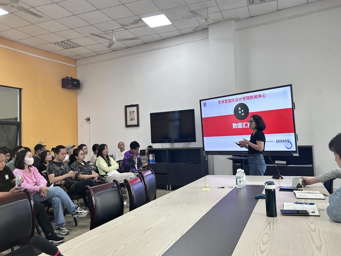 杨老师就寒假以来至今学院新闻发表的情况,按照各专业为目录梳理分享;此外,学院行政、教学和员工工作板块也做了详细的归类和分析,在场的每位教师都做认真听讲和记录。