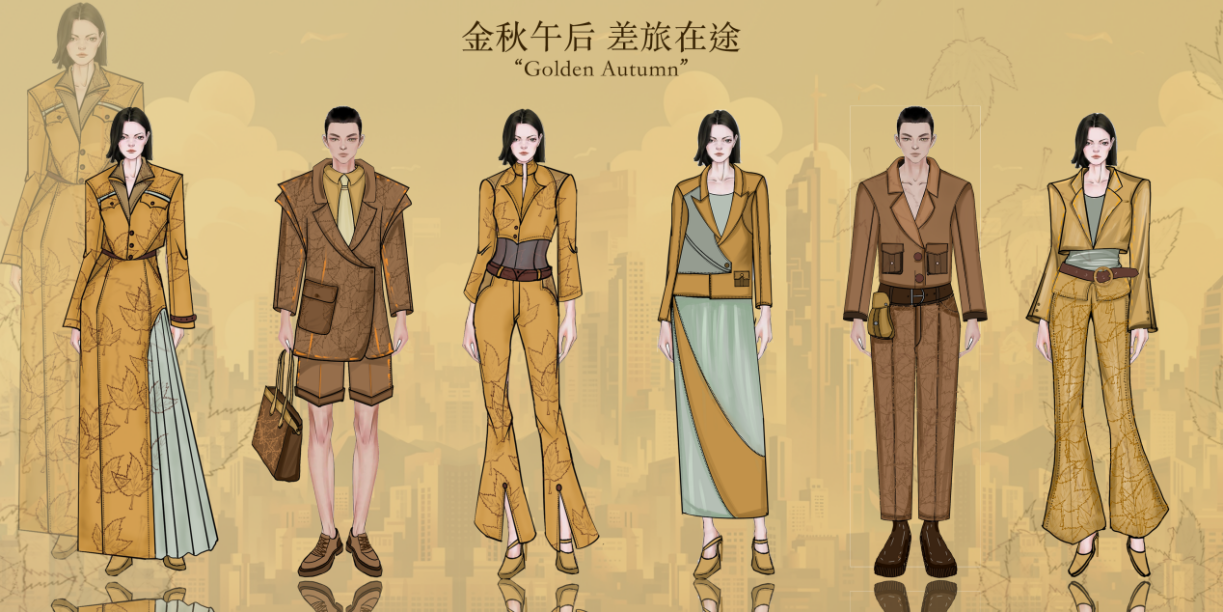 团队一等奖作品:金秋午后差旅在途职业装