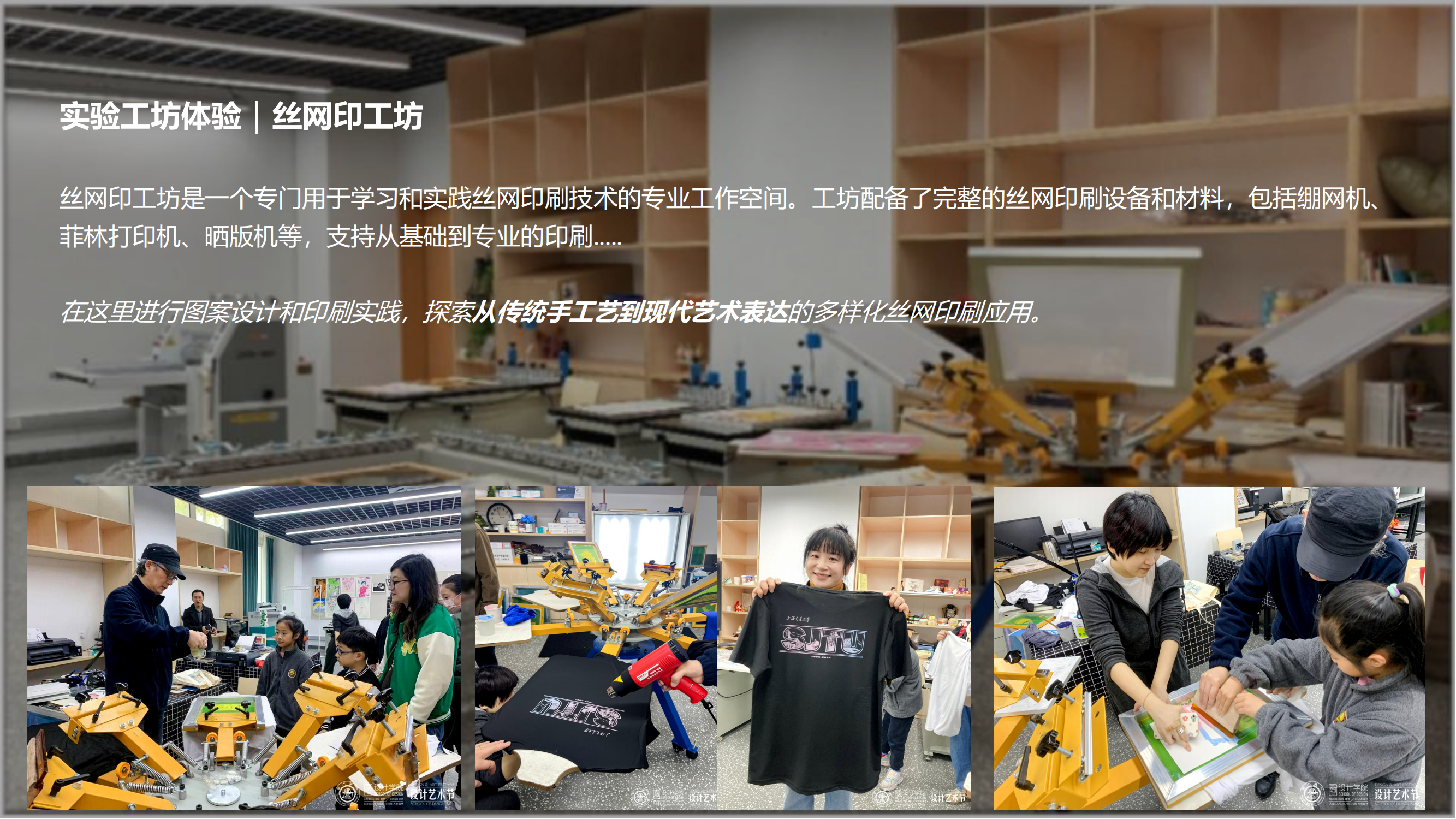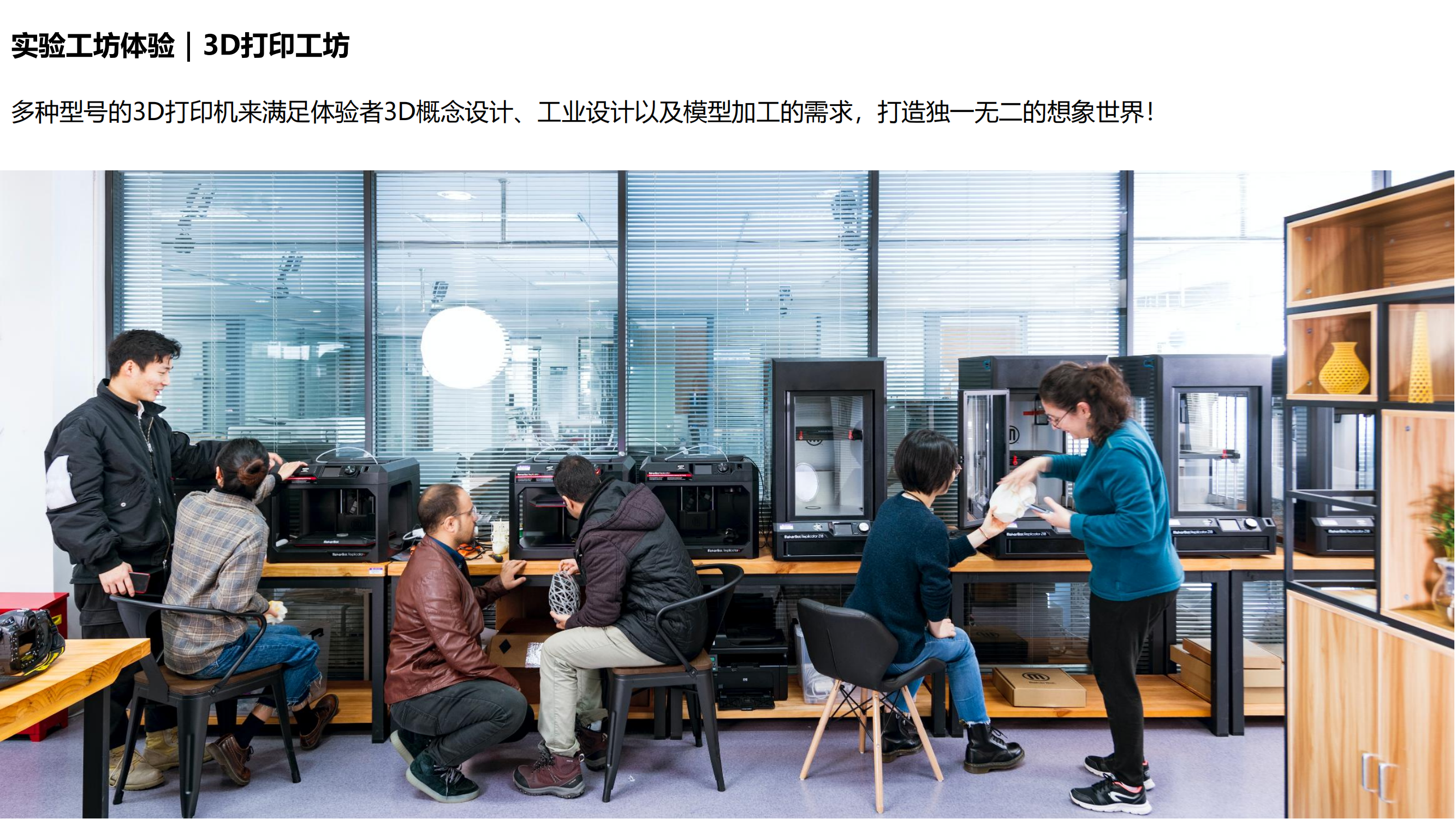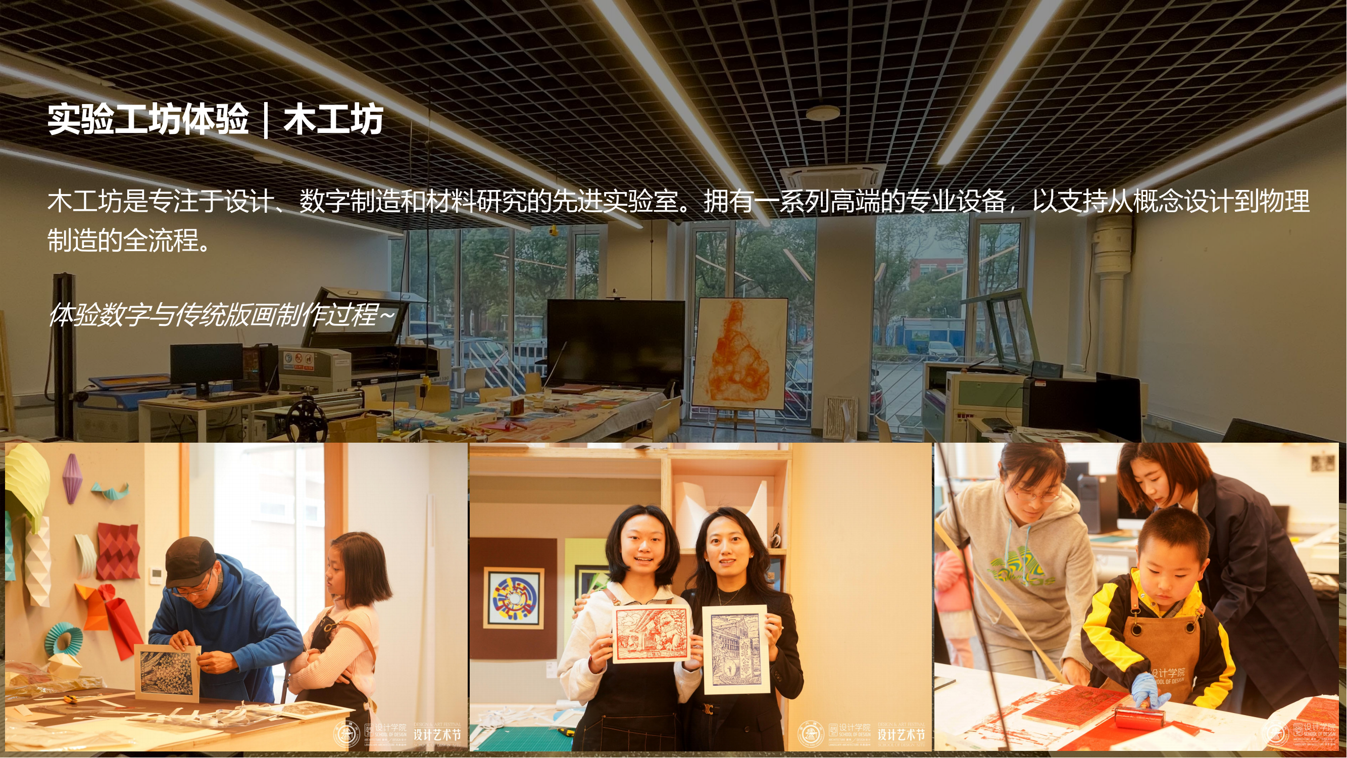 设计大楼实践工坊体验:油泥、版画、丝网印、陶泥、3D打印等工坊体验。