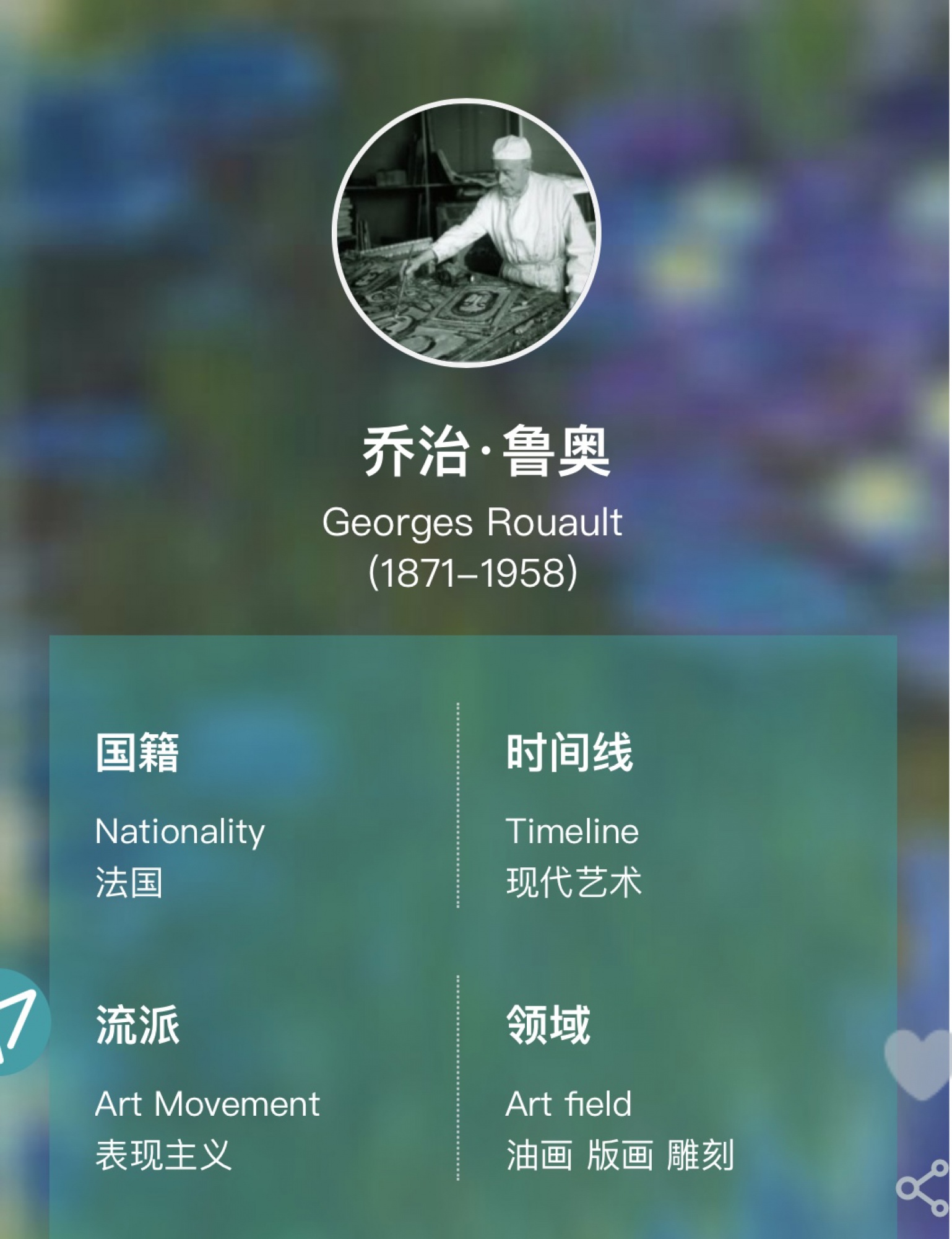 乔治.鲁奥,是一位继伦勃朗之后最伟大的宗教画家,企图通过绘画和宗教拯救人类的灵魂,其创作风格为野兽派或者是象征主义表现主义。