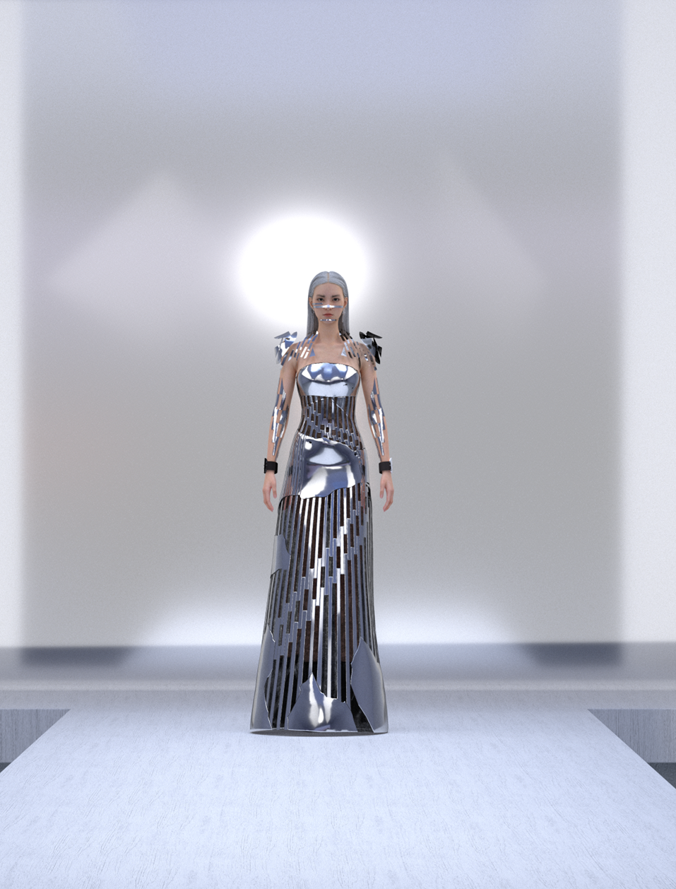 未来主义风格在服装设计领域具有独特的美感和设计价值,其强调对于未来发展的进步,融合了科技工业机械化等元素,通过不断更新的材料应用以及与时俱进的设计,在技术的迭代下不断为服装设计带来多样化的表现形式。