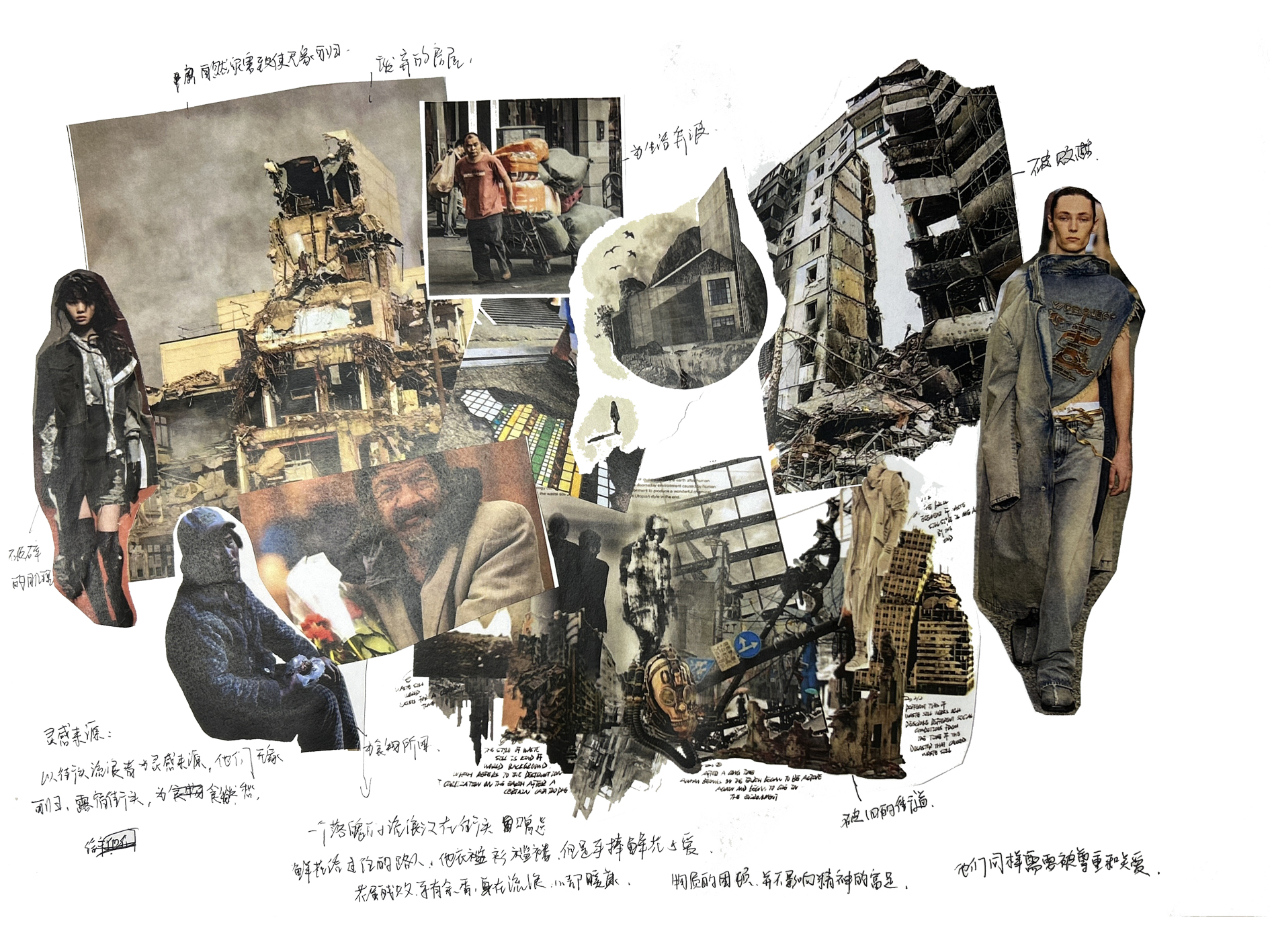 由于大多拾荒者居无定所,有时不得不穿一些不得体的衣服,他们还要接受来自社会的歧视与偏见。此次设计选择用服装为语言去诉说他们背后的故事,赤裸双手也可以去触摸生活,感受属于自己的光芒。