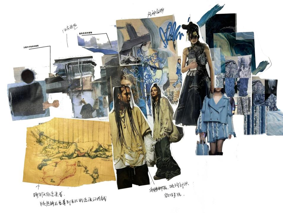 牛仔布又称靛蓝劳动布,色彩以靛蓝为主,是一种棉质粗纱布,质地厚实,纹路清晰。面料富有弹性、结实耐磨、风格可塑性强的优良特性,非常适合长时间穿着和使用。尤其对于拾荒者这样经常需要在各种环境下工作的人群来说,牛仔布的实用性无可替代。经过岁月的洗礼和人们的穿着牛仔表面往往会呈现出独特的磨损和褪色痕迹,这些痕迹为再设计提供了无限的可能性。