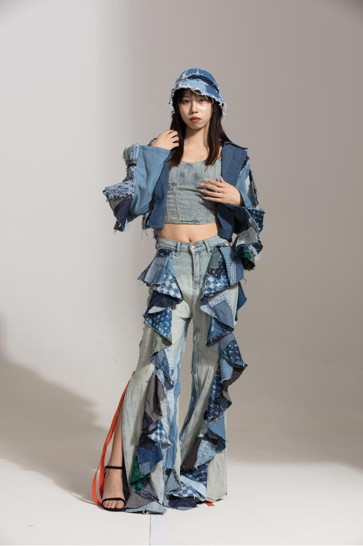 通过对废弃回收牛仔面料的再利用,以减少对环境的污染,改善资源浪费的问题,提高资源的回收利用效率。通过设计调研揭示拾荒者在城市生活中的地位和作用,以及他们如何通过服饰表达来塑造自己的形象和身份,更深入地了解拾荒者的生活状况和需求,为设计出更符合其实际需求的作品提供现实依据。废弃回收牛仔服装面料的拼接再设计,可以将原本被遗忘的废弃物转化为有用的、有时尚价值的物品,为环保做出贡献。