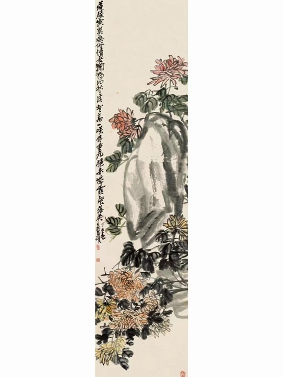 今天共同来鉴赏一篇近代画家“吴昌硕”的作品《菊花石》。