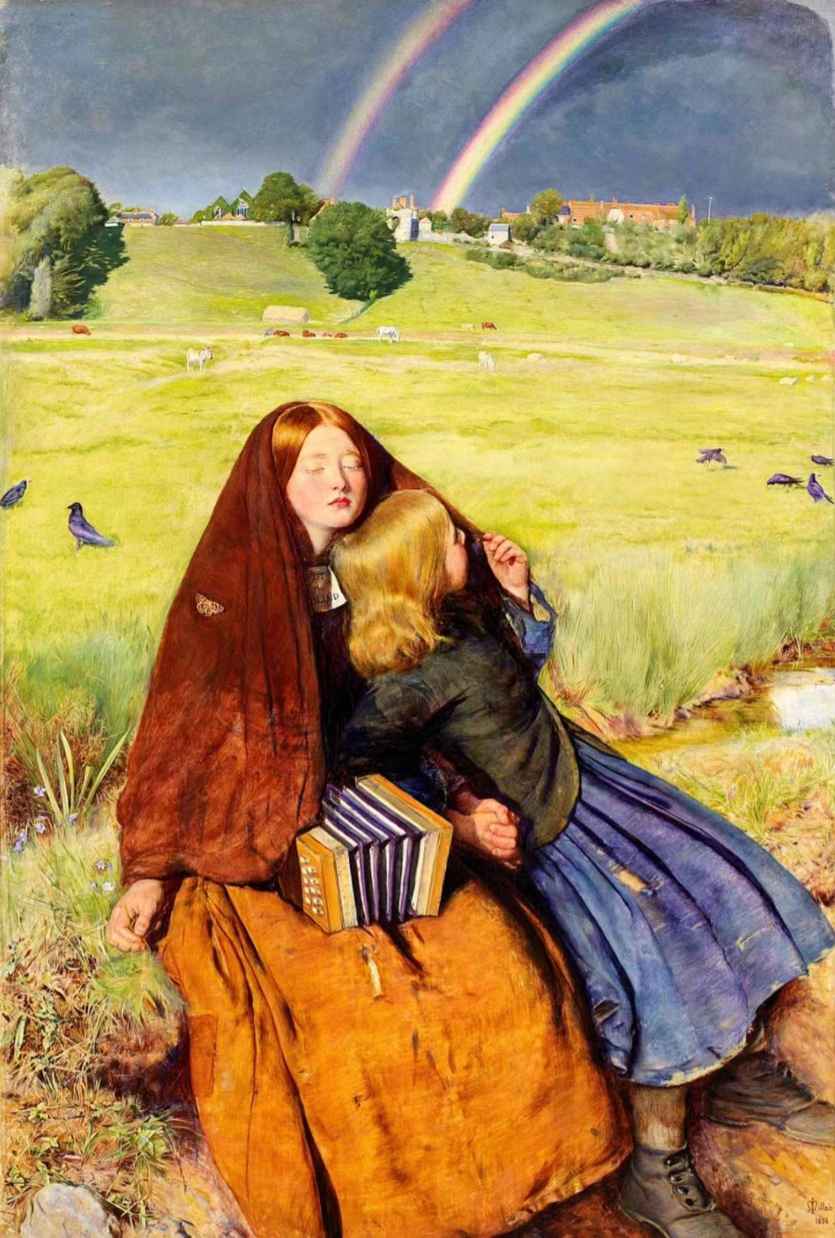 《盲女》是英国画家约翰·埃·密莱于1856年创作的油画作品,现收藏于英国伯明翰市博物馆与美术陈列馆。画上是一幕雨过天晴的自然景色,景物比较开阔,色彩舒人心脾。在前景上画了两个相依为命的穷女孩。其中一个是盲女,另一个更小的女孩紧紧依偎在盲女怀里,一边抬头在观看天上的彩虹,一边在给盲女讲解她所无法领受到的大自然的美丽。