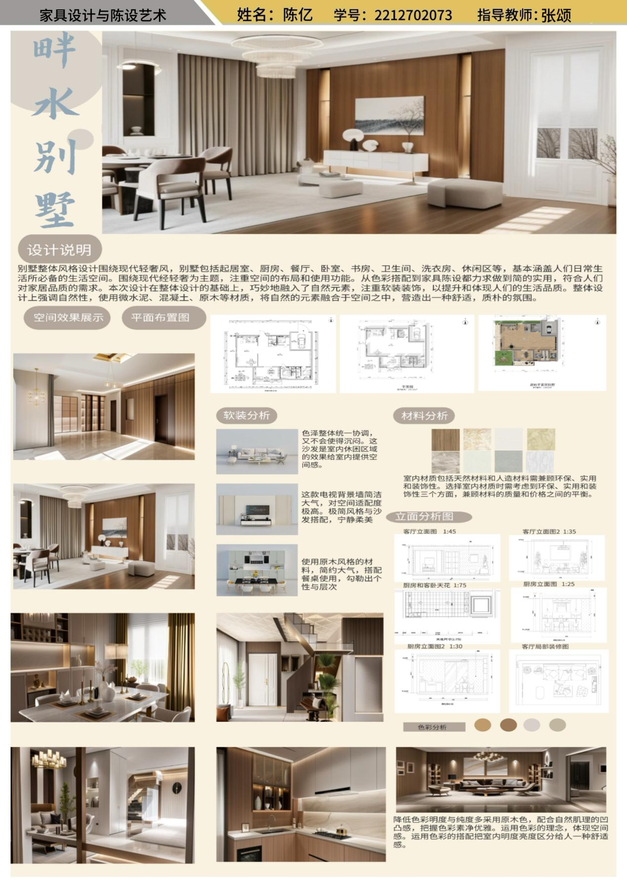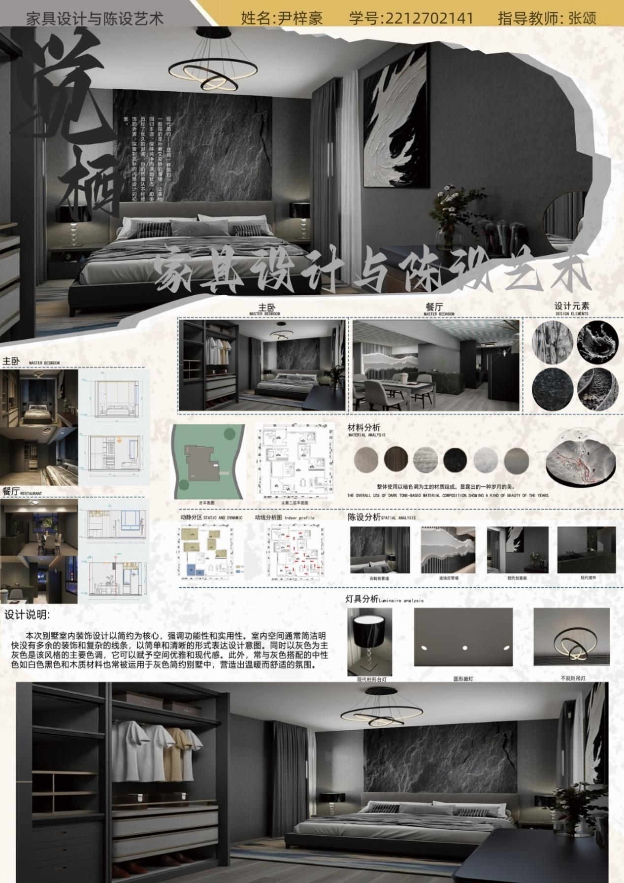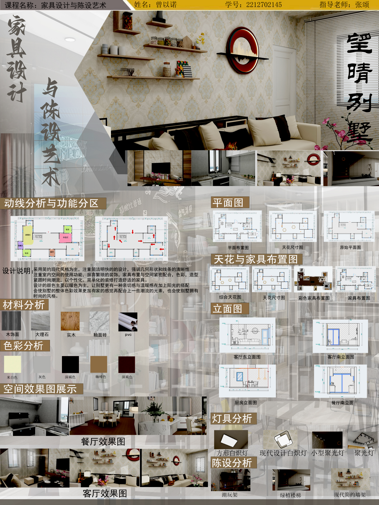 此外,对于室内陈设的内容,我也有了更加明确的认识。原来,除了家具之外,灯光、织物、工艺品等都是构成室内环境的要素。它们各自有着独特的功能和意义,与家具一同为室内空间增添了丰富的层次和情感。尤其在实践环节中,我真切地感受到了设计与实际结合的美妙。一个好的设计,不仅仅是纸上谈兵,更需要与实际相结合,满足人们真实的需求。