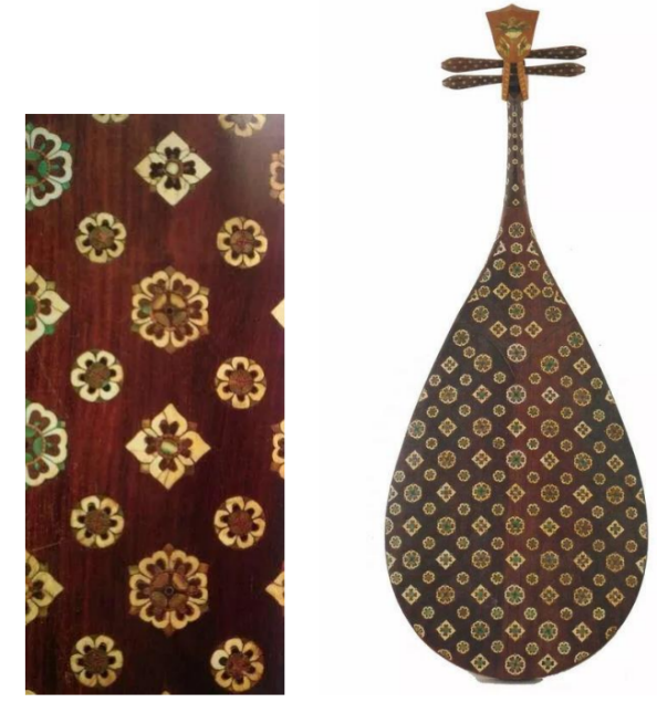 图1木胎漆器琵琶装饰纹样——螺钿团花纹