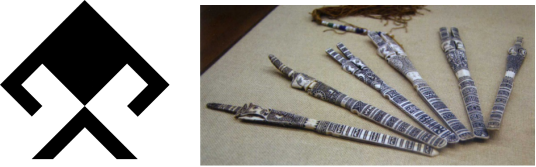 我们可以看到,它在造型上采用的是黎锦蛙纹的设计元素。装饰上采用的是黎族骨簪上的装饰纹样(图1)。