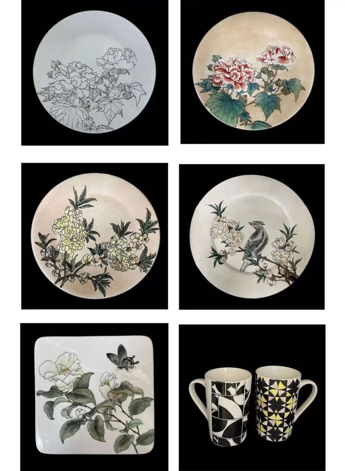 5、把白描图案有取舍的转移到陶瓷产品上,帮助员工把纯艺术思维转化为设计思维。