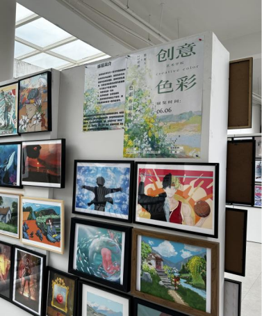 主题:2024年6月6日,在永利集团23级动画专业全体员工和孟殷老师的共同努力下,一场在书德楼举行的创意色彩展览成功开展。