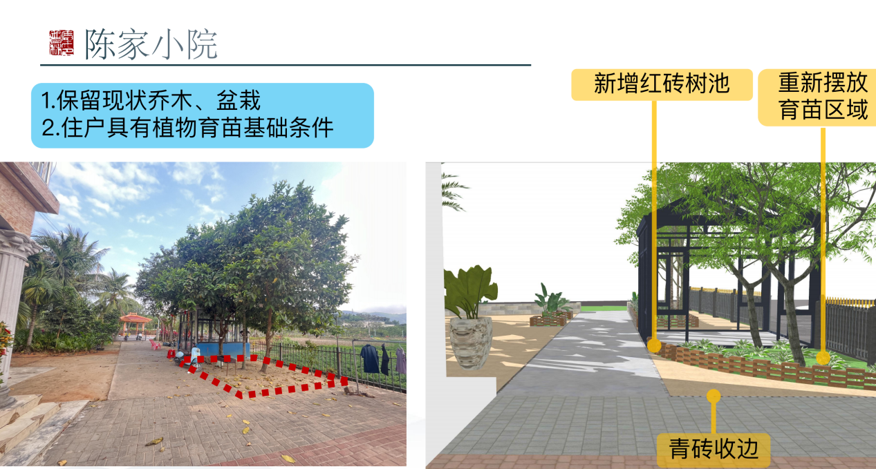 永利集团张鑫书记带领团队对此次工程中具有代表性的陈家小院和李家小院进行了实地考察、测量,对庭院的地形、植被、水源等进行详细的测绘和评估,分析庭院周边环境,包括气候、环境、居民需求等因素。通过前期的调研设计此次庭院提升多款方案,通过团队的讨论、分析,研讨出如下庭院提升改造方案: