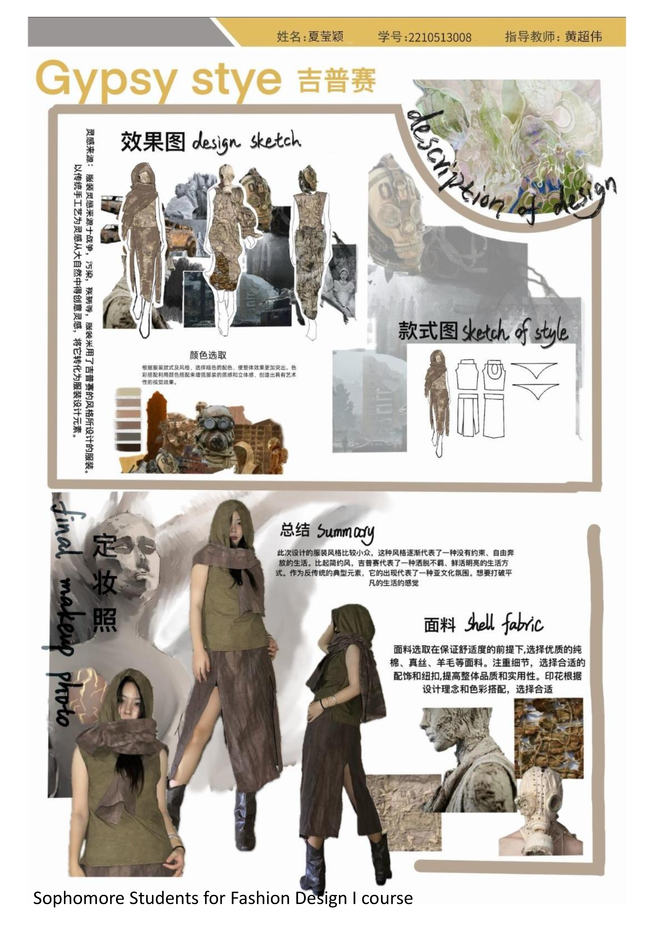 本课程通过系统训练使员工熟练掌握服装设计的基础方法和绘制能力。要求同学们能够准确绘制着装人体、服装造型与结构、服装材料。通过灵感来源、元素提取、面料设计的操作完成系列设计,为下一步的服装结构设计和成衣工艺打下基础。