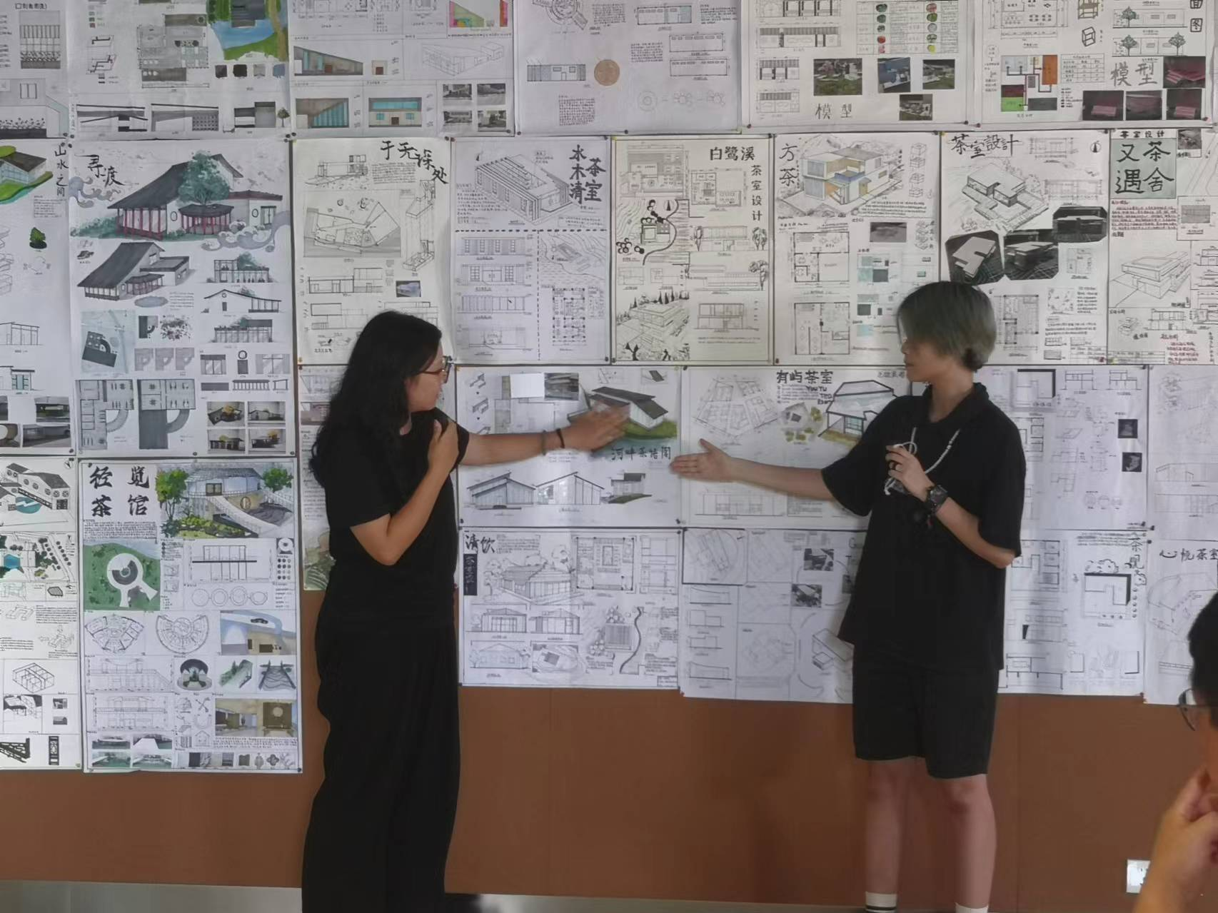评图活动正式开始,2023级城乡规划、风景园林、环境设计的员工代表纷纷展示了自己精心设计的校园茶室作品,同学们展现了他们经过12周的教学,对建筑设计的初步理解。