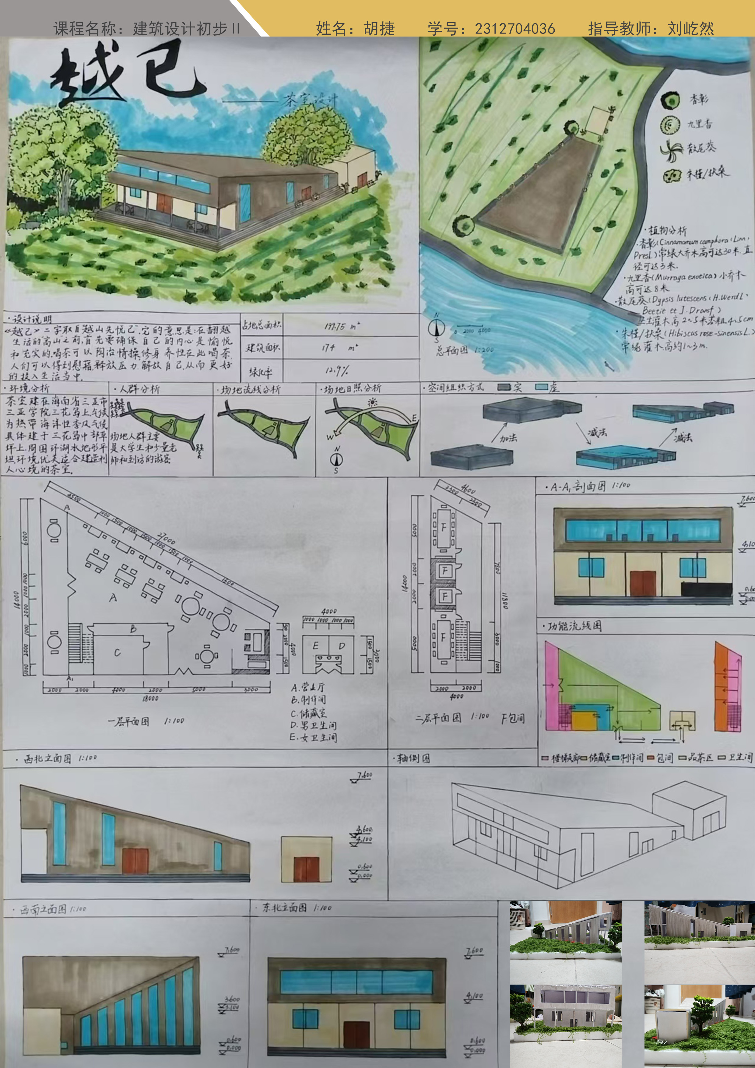 校园茶室设计是《建筑设计初步II》课程中的设计题目之一,作为师生最熟悉的生活环境之一,我们不但是校园的使用者,更是发现校园空间潜力、改善校园环境、创造活动场所的设计者。教学计划由实体空间入手、再到图纸训练的规律。设计初步进行场地勘察、速写与场地模型制作,以教师一对一指导、修改草图,重视过程记录,模型制作环节进入空间教学实验室进行构件制作并搭建,从场地勘察——方案生成—制作—展览—汇报—评图一体化教学过程,训练员工的多种设计表达能力,教学效果达到最佳。