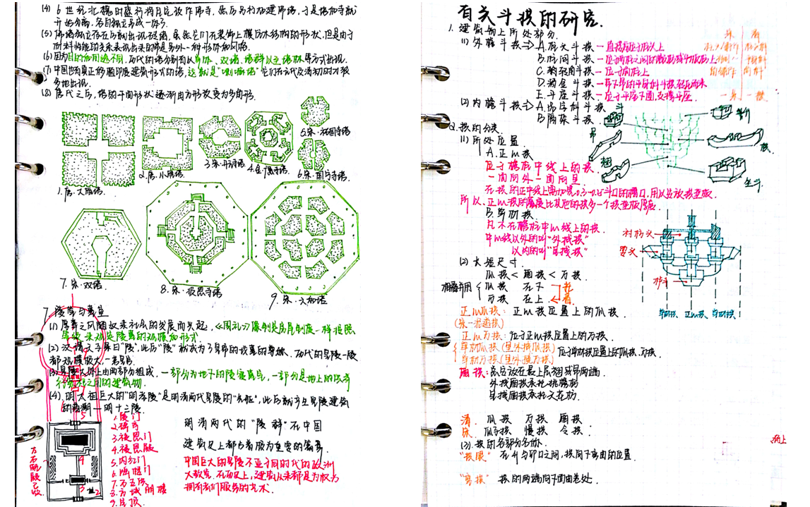 对环规系二年级为主的《中国建筑史》课程创新性主要采用讲授、思考与实践相结合,课内讨论与课外阅读相结合,“线下”课堂学习与讨论,结合智慧树的线上预习、拓展和测试教学,创新性地构建“课前、课中和课后”立体交叉的“混合教学活动”模块。