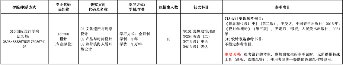 3044am永利集团3044noc设计专业学位硕士点是在海南自由贸易港国家战略以及国际设计岛、国际教育创新岛的背景下,面向现代服务业、高新技术产业、旅游业、会展行业等迎来的发展机遇与高层次设计人才需求设立的。本学位点围绕文化遗产保护与创新、产品与时尚设计、城乡品质生活的提升与人居环境系统建设的理论与方法等方面开展研究,针对海南高速发展中面临的地域文化设计特色创新、人居环境品质提升等产业问题,以设计学等学科为基础,综合运用现代设计理论与方法,探索海南文化遗产资源转化路径和现代设计语言的表达方式,服务海南国际设计岛建设。设置文化遗产与创意设计方向、产品与时尚设计、热带滨海人居环境设计共三个研究方向。